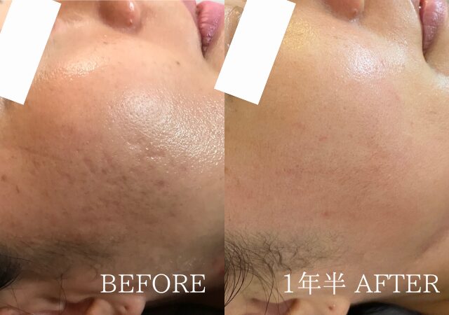 背景:炎症が起こると跡になりやすい、非常に繊細な肌質。クレーターができてからは2年ほど。